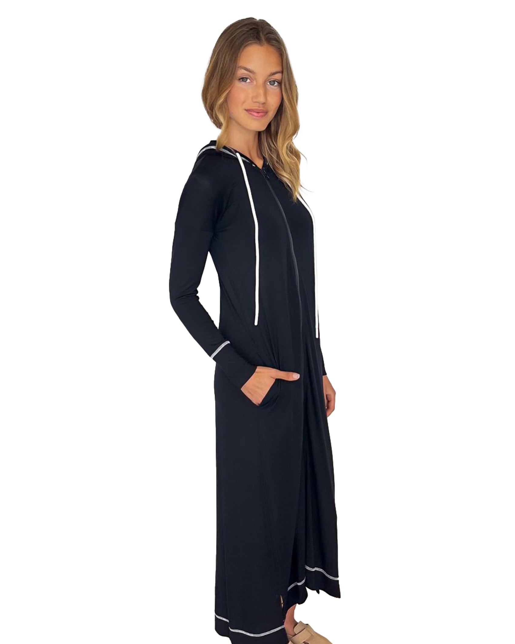 Made from our signature buttery-soft jersey, this hooded zip dress offers maximum comfort with minimal effort. Lightweight and airy, it features a full-length zipper down the front, a relaxed fit, and a sleek hood for an easy, sporty touch.